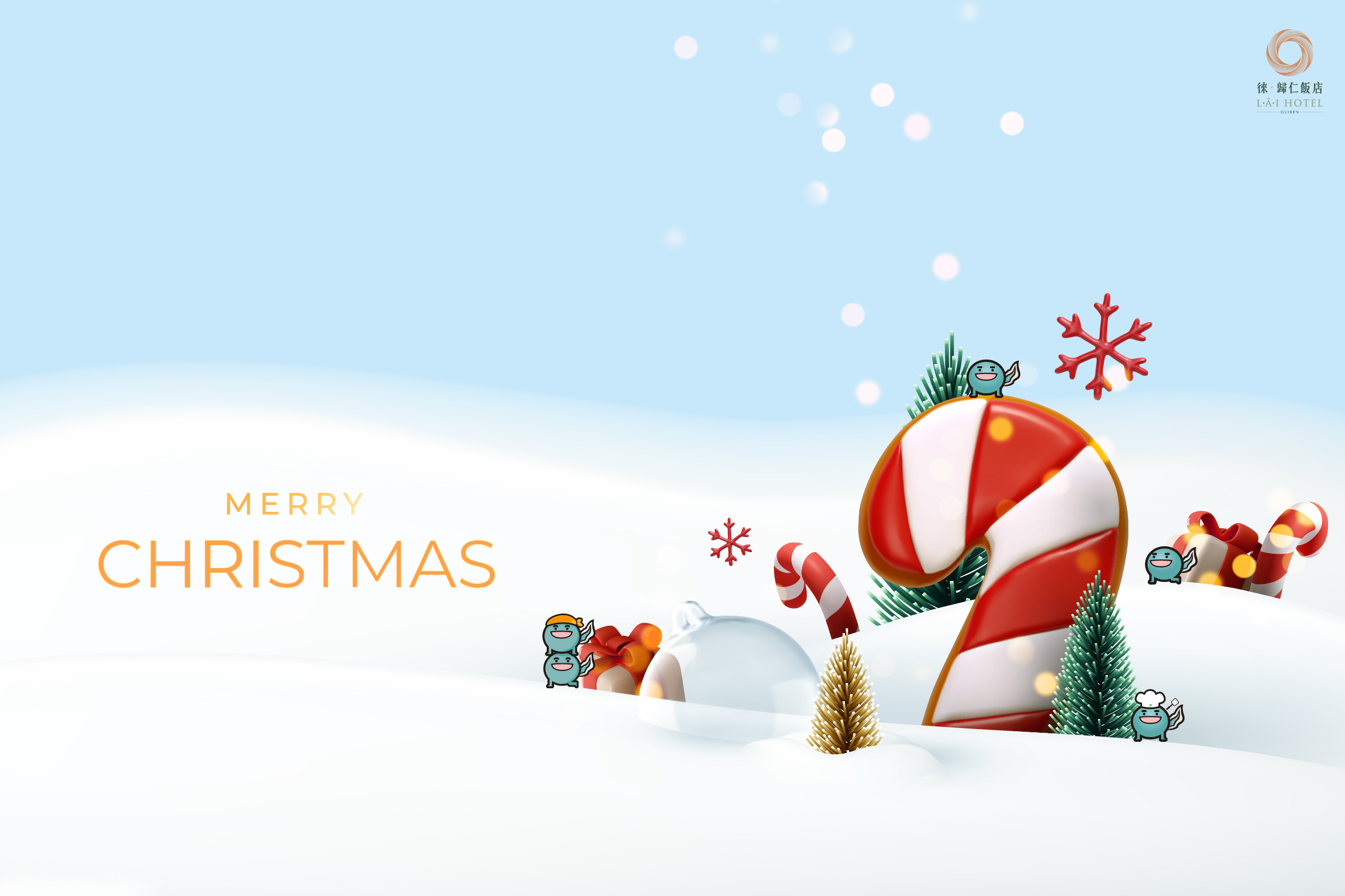 於飯店聖誕節布置區拍照,將照片上傳至任一社群(FB/IG/限動皆可),並至一樓櫃台出示畫面,即可獲得:NT$50 折價券 乙張!